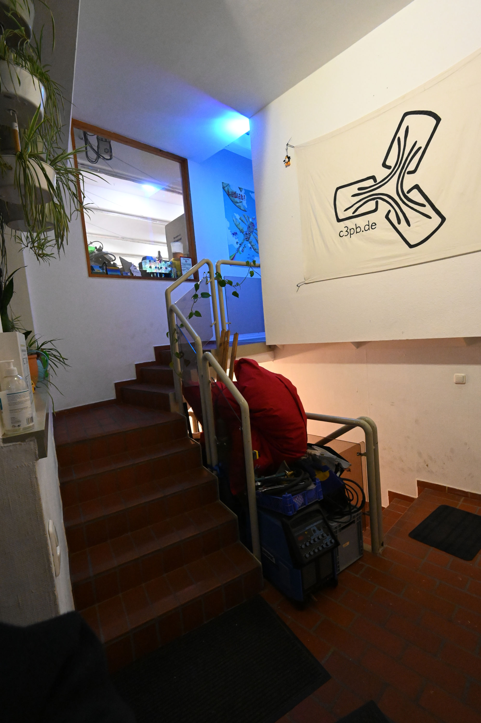 Leider sind unsere Räumlichkeiten nicht barrierefrei. Im Subraum befindet sich am Eingang eine Treppe mit Geländer. Neben dem Haupteingang gibt es auch noch einen Nebeneingang mit gerader Treppe.